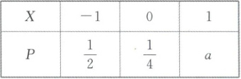 (1)知$a=\frac{1}{4}$,所以X的均值$E(X)=-1×\frac{1}{2}+0×\frac{1}{4}+1×\frac{1}{4}=-\frac{1}{4},$$X^{2}$的均值$E(X^{2})=\frac{3}{4}$,所以X的方差$D(X)=E(X^{2})-(E(X))^{2}=\frac{11}{16}.$