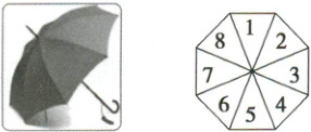 例3 (1)中国是世界上最早发明雨伞的国家,伞是中国劳动人民一个重要的创造. 如图所示的雨伞,其伞面被伞骨分成8个区域,每个区域分别印有数字1,2,3,…,8,现准备给该伞面的每个区域涂色,要求每个区域涂一种颜色,相邻两个区域所涂颜色不能相同,对称的两个区域(如区域1与区域5)所涂颜色相同. 若有7种不同颜色的颜料可供选择,则不同的涂色方案有(