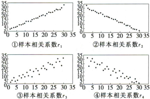 1. 对四组不同数据进行统计,获得如图所示的散点图,对它们的样本相关系数进行比较,正确的是(
