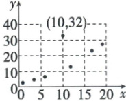 1. 如图是相关变量 $ x $,$ y $ 的散点图,现对这两个变量进行线性相关分析,方案一:根据图中所有数据计算得到样本相关系数为 $ r_{1} $;方案二:剔除点 $ (10, 32) $,根据剩下的数据计算得到样本相关系数为 $ r_{2} $,则(