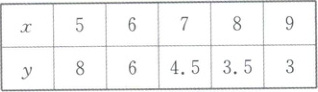 某网店经销某商品,为了解该商品的月销量 y (单位:千件)与售价 x (单位:元/件)之间的关系,收集了 5 组数据并进行了初步处理,得到下表: