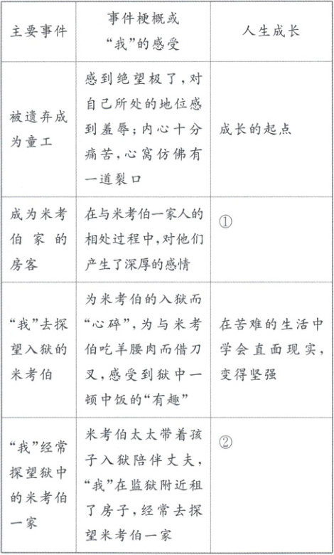 1. 归纳文中的“我”经历的主要事件,概括“我”是怎样一步步成长的。