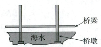 2. 下面是一座未完工的跨海大桥,如果你是设计师,请你运用所学知识来增加大桥的稳固性。(在图上画出来)(5分)