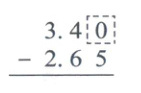 2. 如图,百分位上“0”减“5”不够减,需要从十分位上借“1”到百分位,这个1借到百分位后表示的是(