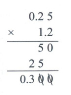 2. 在计算小数乘法时,我们常常会遇到添0或去0的现象。右边的竖式,在算出“$25 × 12$”的结果后,在它前面添0,依据的是(