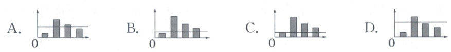 4. 在下面的统计图中,横线所在的位置能反映这4个数的平均数的是(