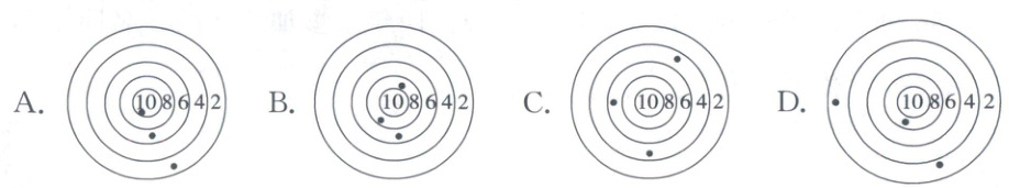 6. 四年级同学进行打靶游戏,每人打3次。打中10所在的区域就得10分,打中8所在的区域就得8分……依次类推。王宁3次打靶的平均成绩是6分。下面图(