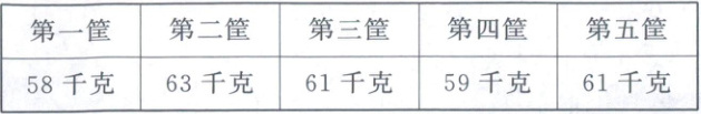 1. 曹冲称象时,用石头代替大象来称。如果将这些石头用同样大的筐来装,刚好装满50筐。从中任意抽出5筐称一称,结果如下表: