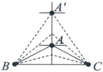1. 小华在借助橡皮筋和木棒制作三角形时,发现拉动A点就会形成不同的三角形。图中的三角形$A'BC$,按角分是(