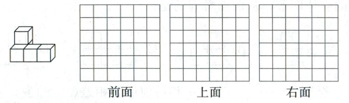 4. 分别画出如图的立体图形从前面、上面和右面看到的图形。