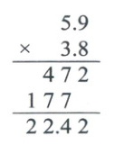 3. 每千克香蕉$5.9$元,妈妈买了$3.8$千克,倩倩用竖式计算应付的钱(如图)。根据竖式可知,其中$0.8$千克香蕉(