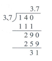 2.根据余数和除数的关系来取近似数。余数31大于除数37的一半,商大于5,所以用“进一法”,商取近似数3.8。