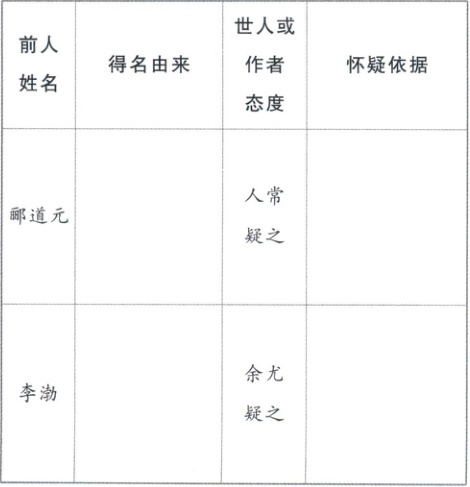 1. 郦道元、李渤对石钟山得名的由来各有什么说法?作者为什么说郦道元的说法“人常疑之”,又说李渤的说法“余尤疑之”?请根据提示填写下表。