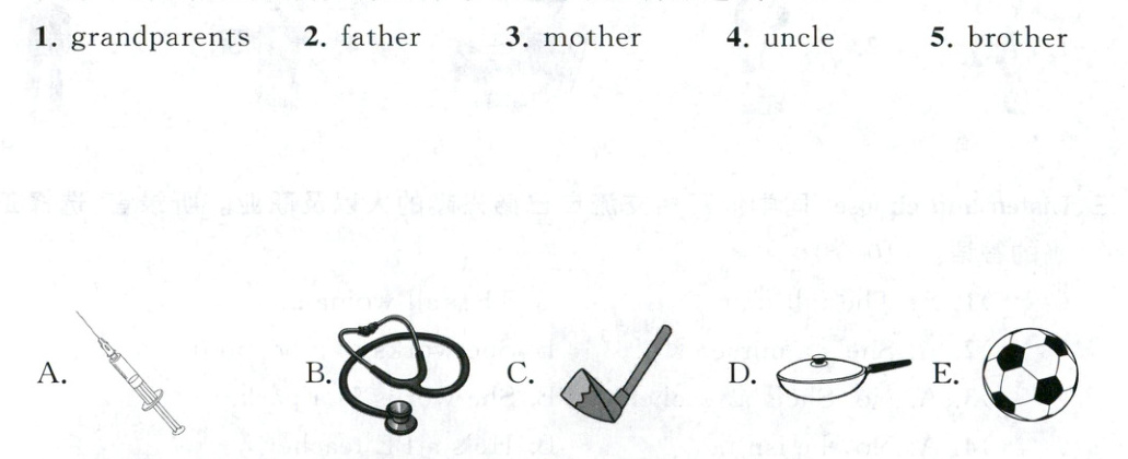 Hello! I'm Tom. Meet my family. My grandpa and grandma are farmers. They are old, but they are strong. My father is a great cook. My mother is a nurse. She's thin and beautiful. Look! This man is my uncle. He is a doctor. Oh, this is my brother. He's a football player. Who's that? Guess! Ha-ha! It's me! I'm a student.
