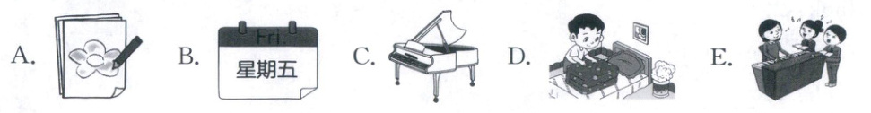 六、Read and choose. Lucy 的同学们也积极展示了自己丰富的活动,给下列句子选择合适的图片。(10分)