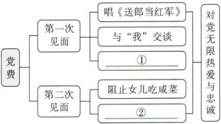 ①拿出银洋缴党费 ②为掩护“我”而牺牲