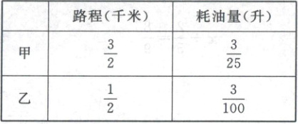 )。A.因为1升汽油可使甲、乙两辆汽车分别行驶$\frac {2}{25}千米和\frac {3}{50}$千米,所以甲更省油