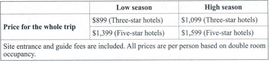 4. If you choose a three - star hotel in high season, how much should you pay for the trip?