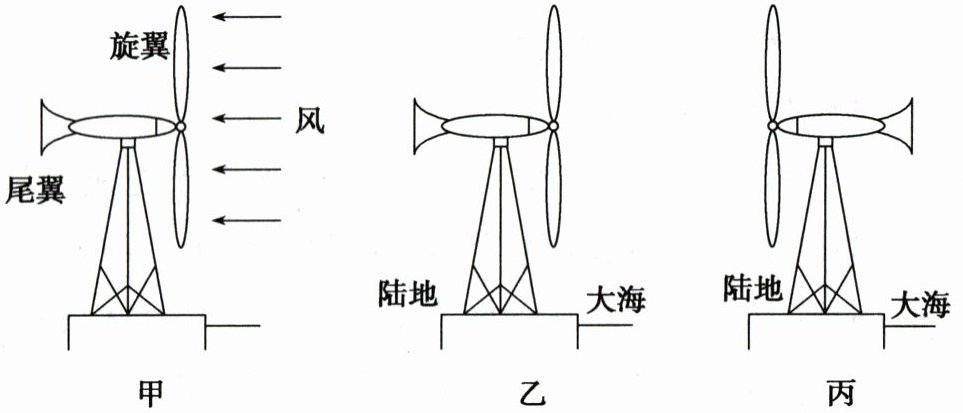 6.(2分)家用小型风力发电机独特的尾翼结构,能使其旋翼自动迎风,如图甲所示。海边,仅在海陆风因素的影响下,图乙、丙所示的情形通常分别发生在(