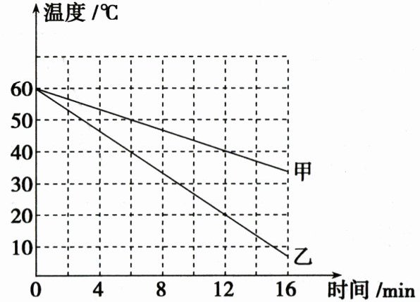 )①甲物质是水 ②0~12min乙温度降低了20℃ ③0~12min甲放出了$8.4×10^{4}J$的热量 ④乙物质的比热容为$2.1×10^{3}J/(kg·℃)$