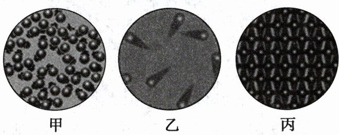 )A.甲、乙、丙分别表示液体、气体、固体分子的排列情况