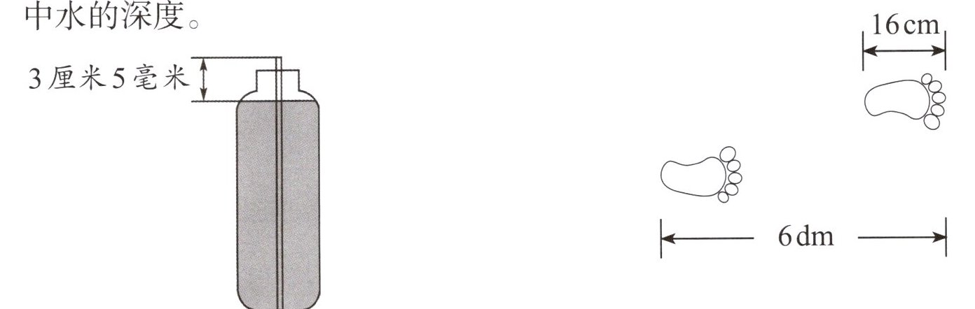 8. (1)用一根长20厘米的小棒测量瓶中水的深度。