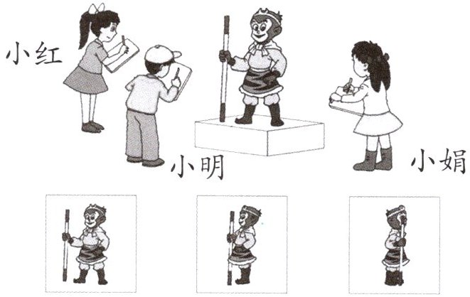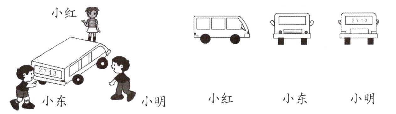 1. 下面的几幅图分别是谁看到的?连一连。