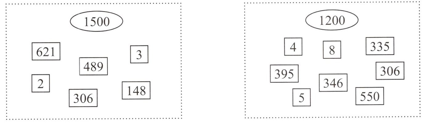 8. 哪两个数相乘的积最接近圈中的数?画上“○”。