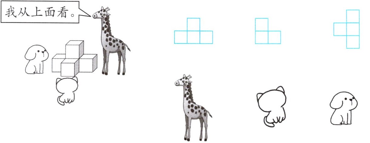 1. 下面的几幅图分别是谁看到的?连一连。
