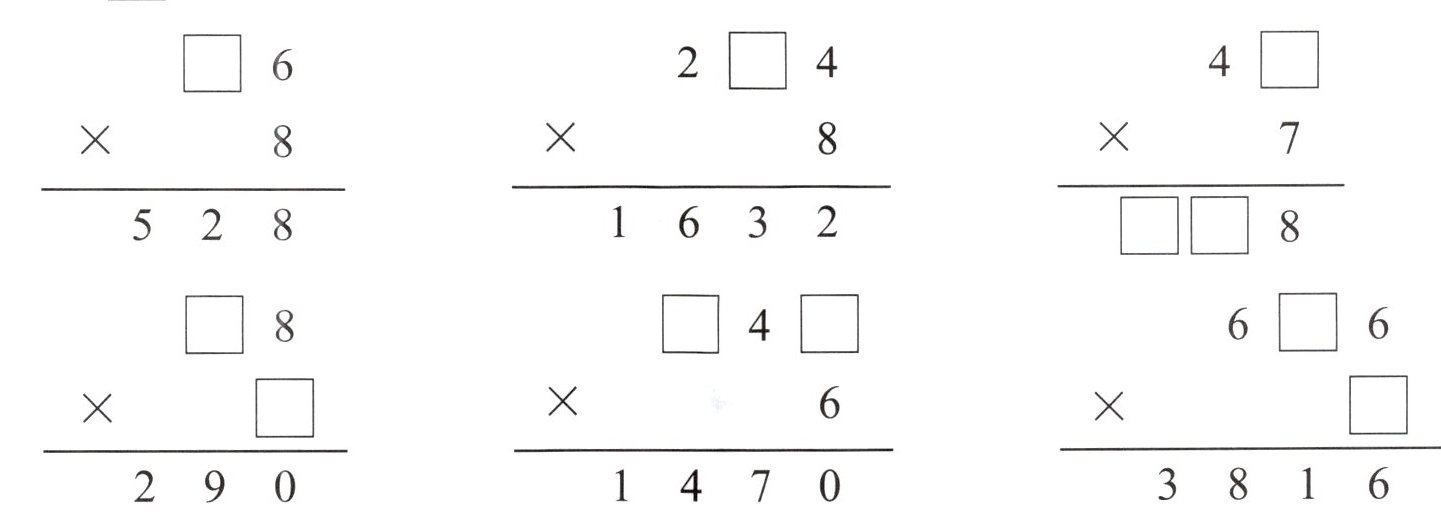 $\begin{array}{r}2\quad□\quad4\\×\quad8\\\hline1\quad6\quad3\quad2\end{array}$