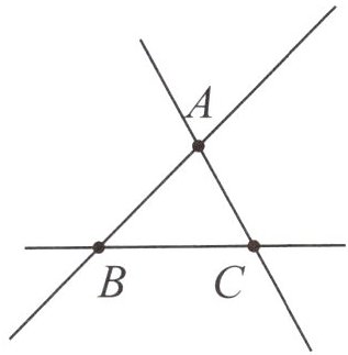 4. 下图中直线$l$与直线$n$相交于点(),直线$m$与直线$n$相交于点();如果直线$l$与直线$m$会在点$C$相交,请你画出点$C$的位置。