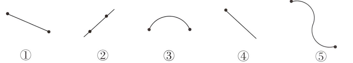 2. 下面的图形,( )是线段,( )是射线,( )是直线。