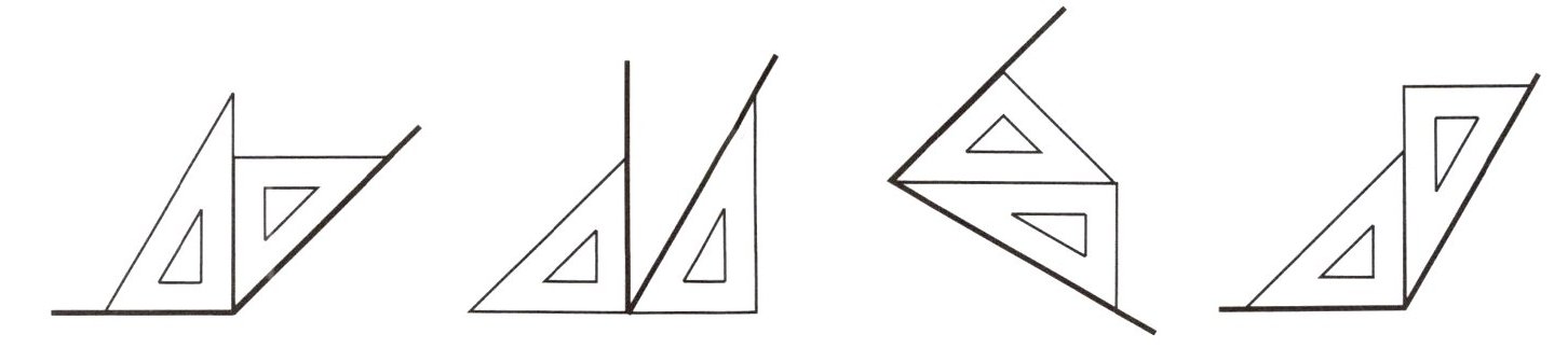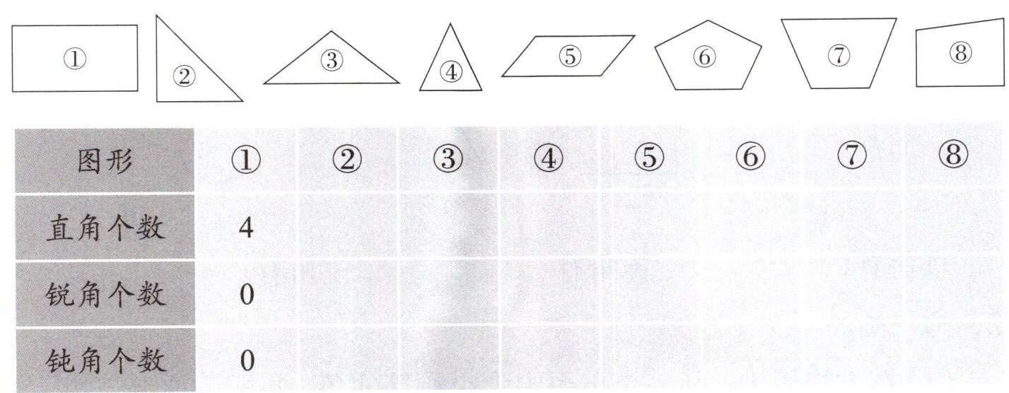 6. 数一数每个图形中直角、锐角、钝角分别有几个。