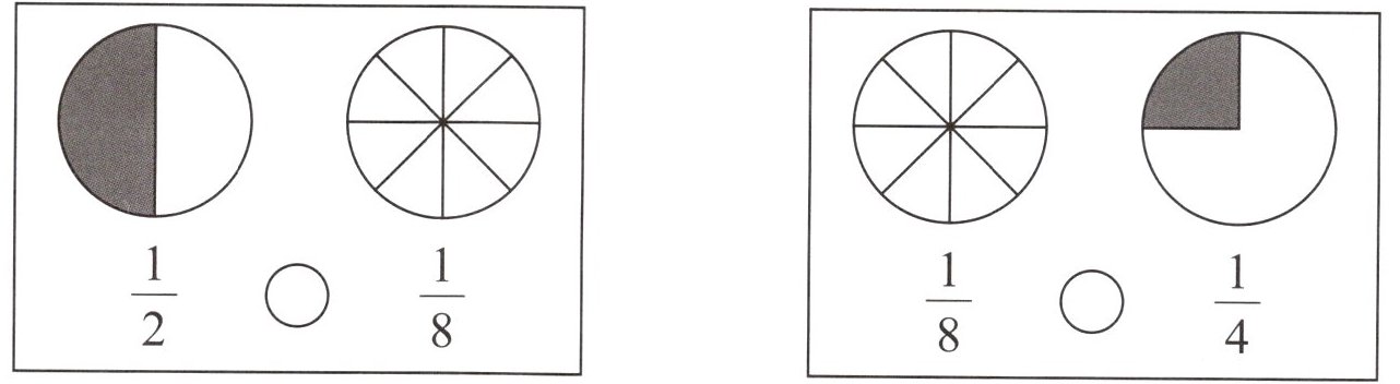 $\frac{1}{8}$ $◯$ $\frac{1}{4}$
