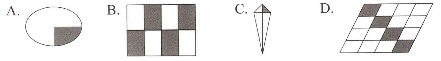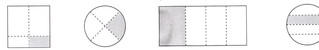 8. 下列图形中,( )和( )的阴影部分都是占$\frac{1}{4}$。