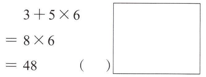 $\begin{array}{l}3 + 5 × 6 \\ = 8 × 6 \\ = 48\end{array}$(