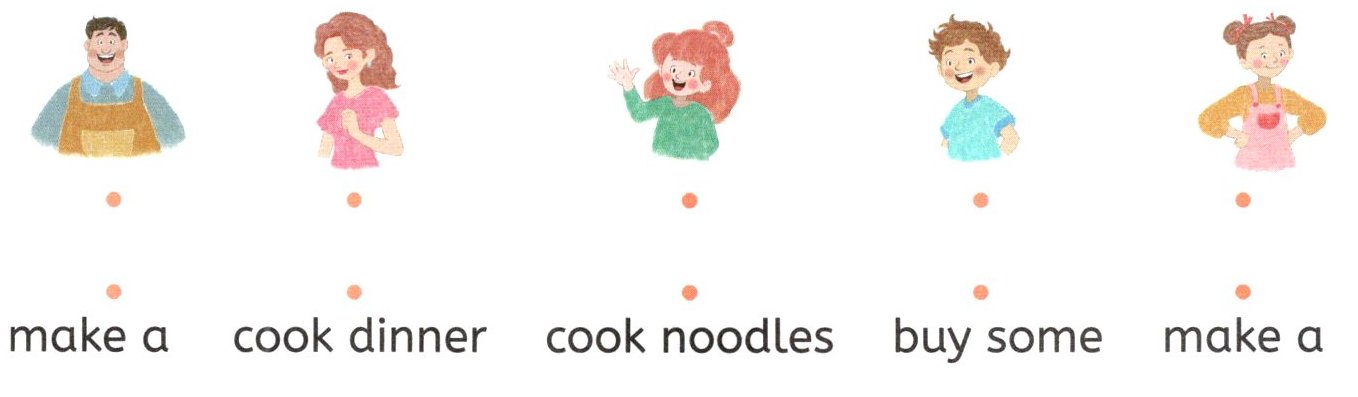 make a cake cook dinner cook noodles buy some flowers make a card
