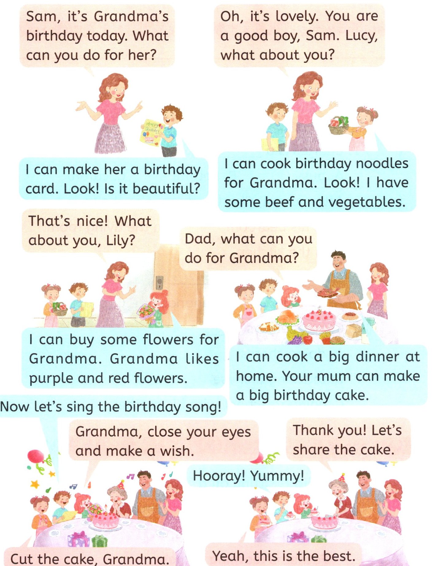 Sam, it's Grandma's birthday today. What can you do for her?
