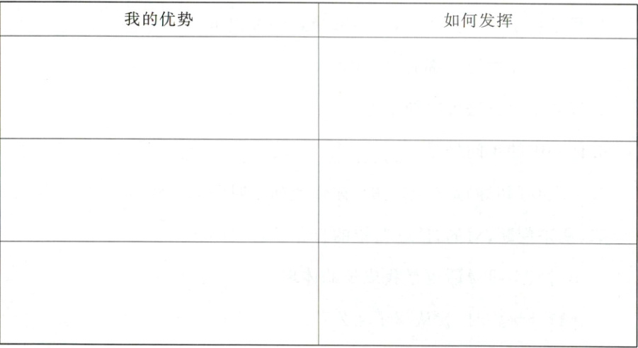 2. 你自己有哪些优势?想一想并记录下来,再想一想如何发挥自己的优势。(12分)