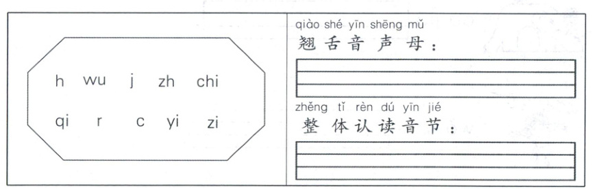 翘舌音声母:zh r 整体认读音节:wu chi yi zi