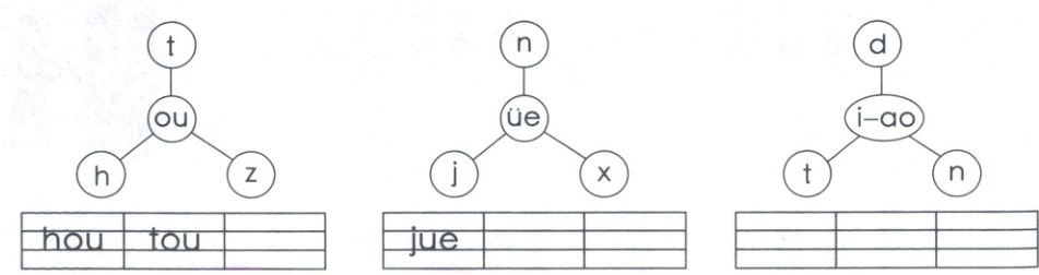 zou nüe xue tiao diao niao 【易错提示】此题考查学生拼读音节的能力。答题时按照给出的范例进行拼读,将拼出的音节依次写在四线格里,注意格式要正确。