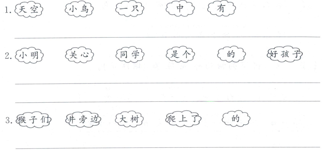 一、将下列各组词语分别排列成完整的句子,并加上标点符号。