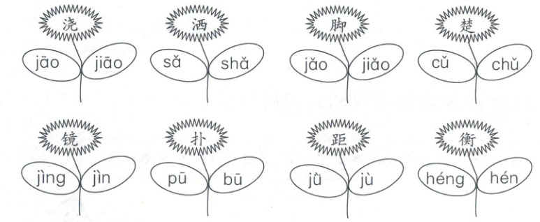 一、(新素材)根据花上的字,给下列注音正确的叶片涂上颜色。(8分)