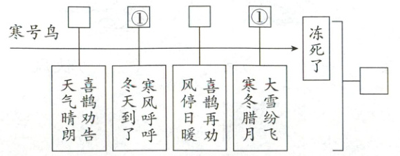 3. (思维导图)把寒号鸟说的话和课文告诉我们的道理填在相应的方框中,补全思维导图。(填序号)(6 分)