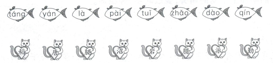 提示:táng yán là pài tuǐ zhǎo dào qín 稻 唐 腿 沼 岩 腊 派 勤