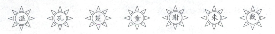 四、妍妍看到了下面的姓氏,请按音序给下面的姓氏排序。