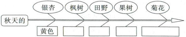 秋天的雨,有一盒五彩缤纷的颜料。你看,它把黄色给了银杏树,黄黄的叶子像一把把小扇子,扇哪扇哪,扇走了夏天的炎热。它把红色给了枫树,红红的枫叶像一枚枚邮票,飘哇飘哇,邮来了秋天的凉爽。金黄色是给田野的,看,田野像金色的海洋。______是给果树的,橘子、柿子你挤我碰,争着要人们去摘呢!菊花仙子得到的颜色就更多了,紫红的、淡黄的、雪白的……美丽的菊花在秋雨里频频点头。