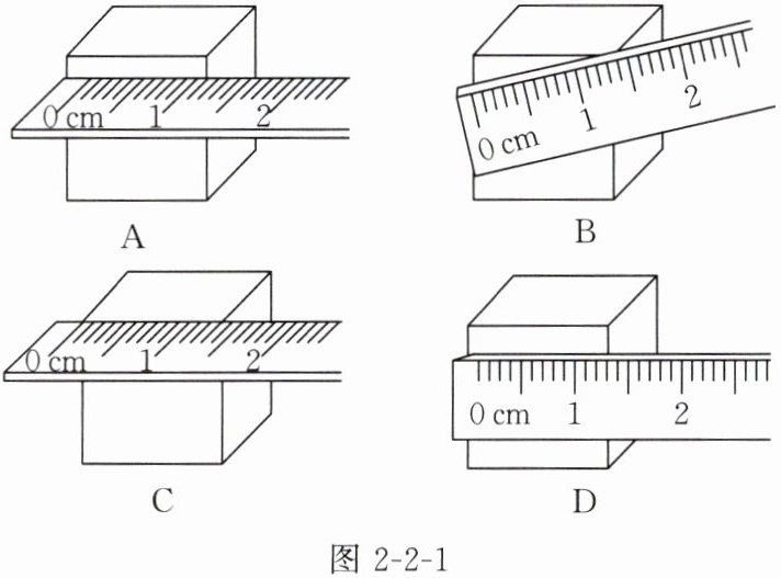 3. 为测出小木块的长度,图2-2-1中使用刻度尺的做法正确的是(