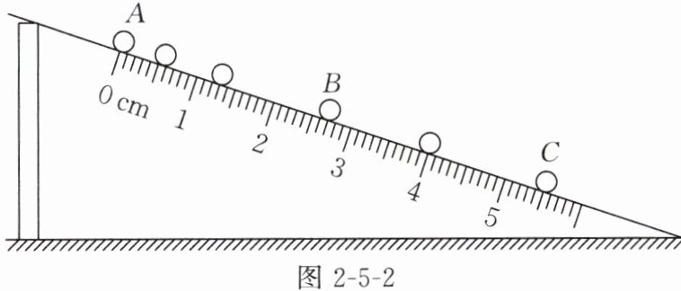 1. 在测量小球的平均速度时,让小球从斜面上的A点由静止滚到C点,并用频闪照相机每隔0.1s拍摄一次,频闪照片如图2-5-2所示。则下列说法中(