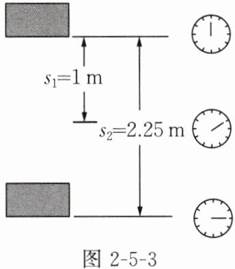 3. 小明做“测量纸片下落的平均速度”实验,实验过程如图2-5-3所示,图中表每格为0.5s,指针转动未超过一圈。在该次实验中,纸片通过全程$s_{2}的平均速度\overline{v}_{2}= $